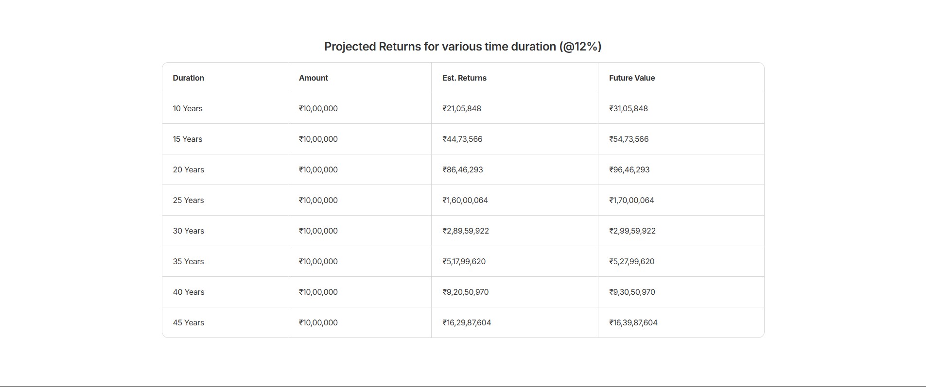 ✔ Projection table for 10–45 years